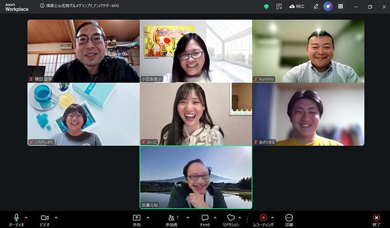 小田実行委員長、田邉副実行委員長、あさひまるさん、みいこさん、橋田さん、つちやさん、くにひろさんが出席。そして、都合が合わず、かーくんは欠席でしたが、環富士山名物グルメグランプリ グルメフェスティバルのイベントの司会として関わってくれているみづきちゃんも前半に参加してくれました。